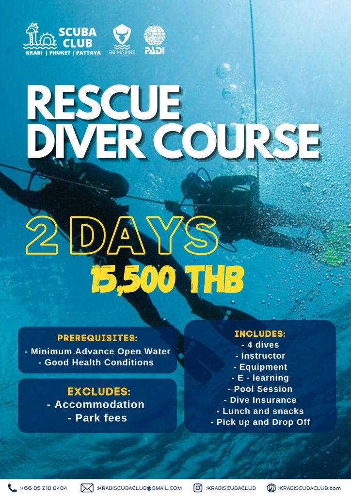 The PADI Rescue Diver course teaches divers how to prevent and manage emergencies that may occur underwater, as well as how to assist others in distress.