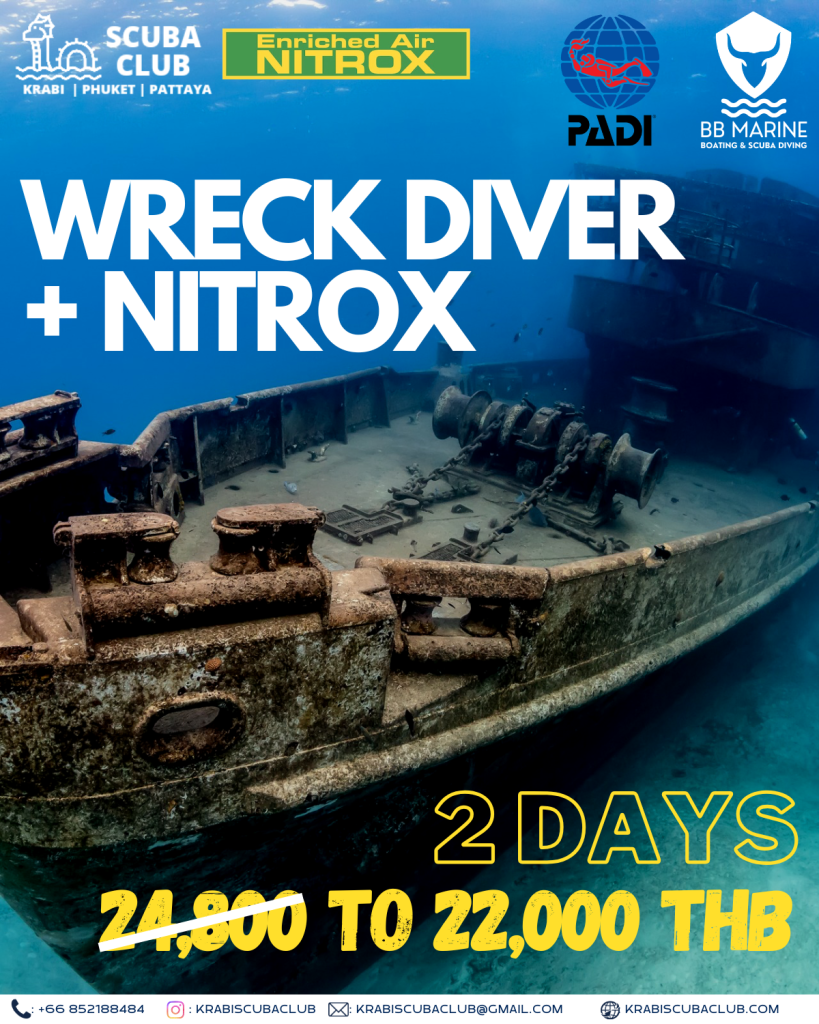 Remark : Wreck Diver course can combine with other courses such as Sidemount Specialty or Nitrox Specoalty or Advance Nitrox course